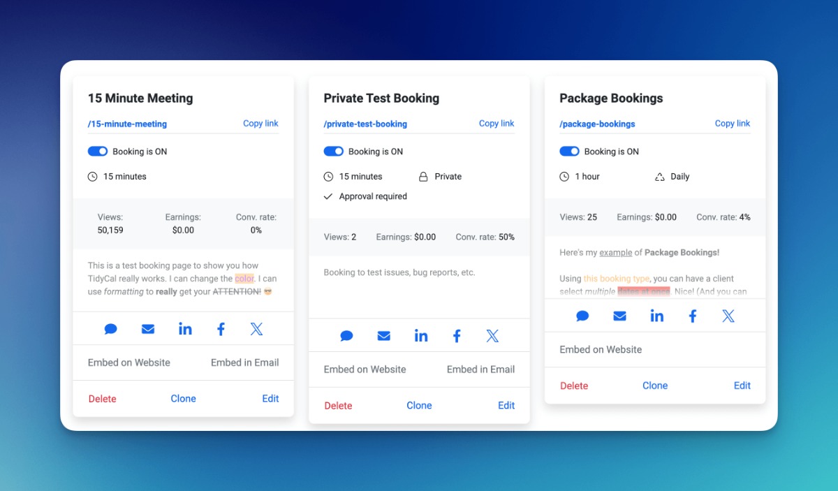 📆 TidyCal  - Stats and analytics for Lifetime customers to see views, conversion rate, and earnings for Booking Types