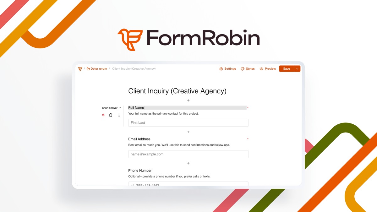 FormRobin is the easiest and most affordable way to create beautiful forms that convert. Whether you're collecting leads, running surveys, or onboarding clients, FormRobin makes it simple.